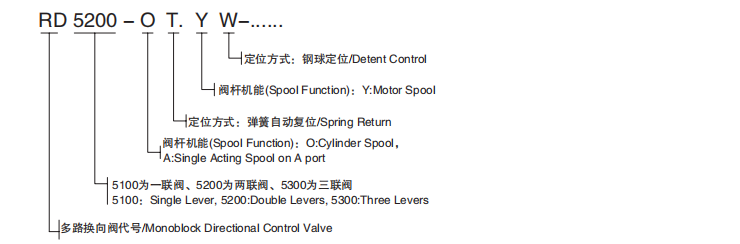 RD5000系列整體式多路閥是我公司引進(jìn)北美的一種中高壓整體式多路閥??砂纯蛻?hù)要求在閥上設溢流閥、單向閥。溢流閥可調節壓力,單向閥防止油液倒流。換向閥的滑閥機能有A,O,P,Y等,可任意組合,換向手柄有兩種安裝形式,便于不同方向的操作,該閥采用并聯(lián)或者串聯(lián)油路,設計有壓力輸出口與其他液壓元件相連接提供動(dòng)力源。經(jīng)過(guò)特殊設計的密封方式,使閥的密封性能好。該閥廣泛應用于叉車(chē)、環(huán)衛車(chē)輛、小型裝載機等工程機械的液壓系統。
